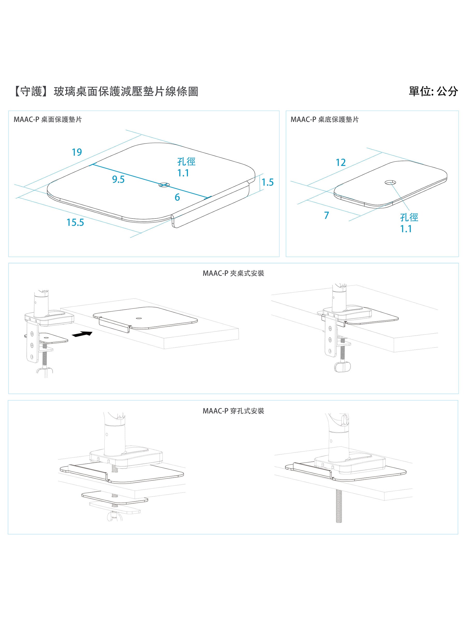 【守護】玻璃桌面保護減壓墊片 | 適用於夾桌式或穿孔式安裝