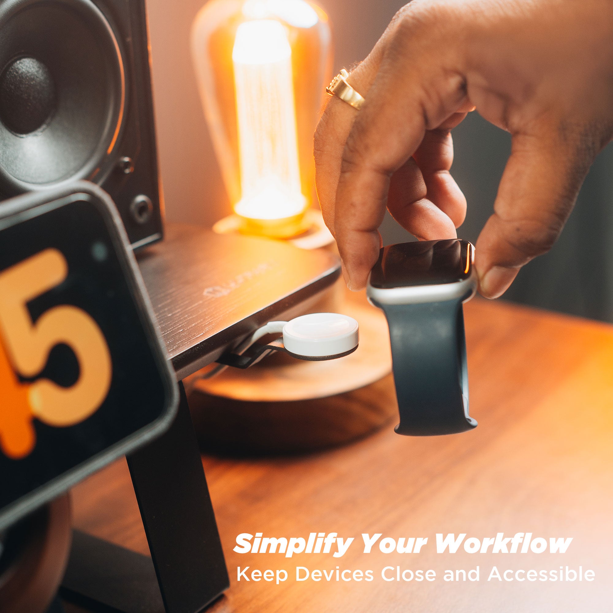 #2 小配件:手機架、MagSafe手機架、平板電腦架、收線扣環,在85及116公分桌板都能4款同時安裝。